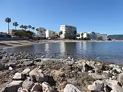 Cala Bona is a small fishing town and holiday resort on the east coast of Majorca in the Balearic Islands of Spain. It consists of a cove with a harbour and surrounding coastal area and lies within the municipality of Son Servera. The population of the town in 2005 was 1,088 inhabitants. In 2011, it had a population of 1,258.[1] It is located to the north of Cala Millor, to which is connected by a promenade, and it lies to the south of Port Verd. Fodor's 1989 guide to Spain described Cala Bona in these terms: "Once an unspoiled fishing village, but now overwhelmed by neighboring Cala Millor. Mixed rocky and excellent sandy beach."[2]