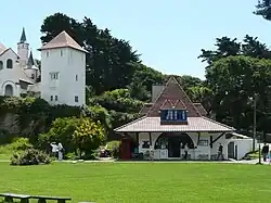 William Done Bushell offered the island to Dom Aelred Carlyle in 1900. An Anglican Benedictine community, led by Carlyle, arrived six years later in 1906, and built the current abbey in the Italian style with assistance from Lord Halifax and others between 1906 and 1910. Initially a row of cottages were built for the people working on the building; hence the abbey was named as "cottage Monastery." The chapel was added in 1910. Three years later the monks were received by the Roman Catholic Church,[9][5] except for a small Anglican remnant which left Caldey and moved into Abbey House, next to Pershore Abbey, Worcestershire. This was a house which had belonged to Caldey Abbey, but was returned in 1913 to its original, Anglican donor.[10] The Anglican Benedictine community moved on from Pershore to Nashdom Abbey in 1926.[11]