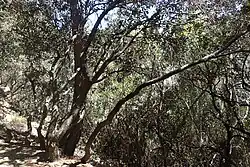 The waterfalls are the highest in elevation found on the island and are located about 2 km north of Pano Platres village.[7] The official starting point is 3km from Troodos square.[8] Some tourists visit the area by using the roadway towards the waterfall or following the nature trail on foot leading to it through Psilo Dendro.[9] The nature trail can take between 1.5 and 2.5 hours to walk. It is ranked as average (Level:3) in difficulty.[10] The trail can be used for either hiking or walking but is best used from March until October. Dogs are able to use this trail as well.[11][12]