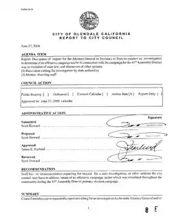 City Of Glendale request for investigation regarding 2006 distribution of controversial media fliers