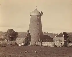 After Percy and Charlotte left Oatlands in about 1892 it appears that the mill ceased operating and not long after the sails were removed for safety reasons.[20] A photo is shown on the left of the mill in about 1900 after the removal of the sails.