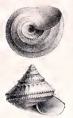 | Original drawing with two views of a shell of Calliotropis talismani | |