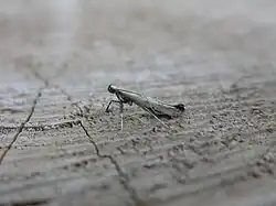 The wingspan is 14โ€“16 millimetres (0.55โ€“0.63 in). It is very similar to Caloptilia elongella and both species are quite variable.Identification requires microscopic examination of the genitalia.[3][4]