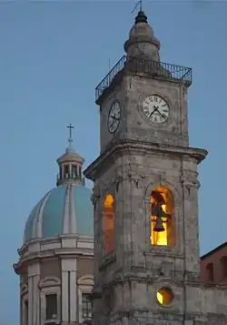 The earliest known mother church was the Church of Santa Maria, later called degli Angeli (due to a painting of the Madonna surrounded by angels) or la Vetere to distinguish it from the new mother church.[1] This new church, built around the year 1000 as the palatine chapel of the Pietrarossa Castle, became the parish seat by a decree of Frederick II in 1239. Before this, pastoral care was entrusted to the Santo Spirito Abbey (since 1095).