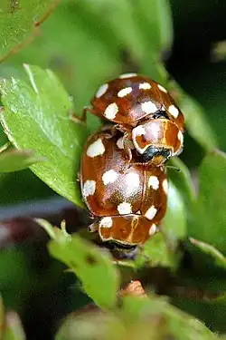 - ^ Trevor and Dilys Pendleton (2004). "18-spot Ladybird Myrrha octodecimguttata". Eakringbirds.com. Retrieved 15 January 2013.