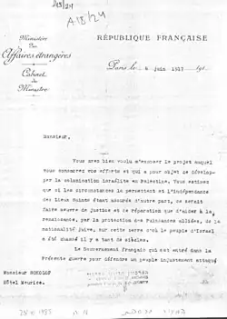 - ^ "French support for the Zionist cause in 1917". balfourproject.org. Balfour Project. September 2014. Retrieved 14 June 2017.