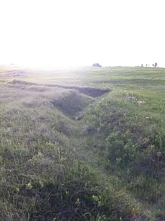 Although very eroded after over 85 years, the original trench system at Camp Hughes is still intact and is the only World War One era trench system remaining in North America.