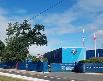 The first Camp des Loges opened in June 1904. It was named after the nearby Camp des Loges military base reserved for soldiers of the French Army. In 1970, following the merger of Paris FC and Stade Saint-Germain to form Paris Saint-Germain (PSG), it became the club's training ground.[1] Since then, the site also serves as the headquarters of the Association Paris Saint-Germain.[2]