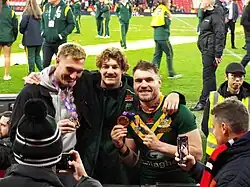 In October he was named in the Australia squad for the 2021 Rugby League World Cup.[33] In the second group stage match at the 2021 Rugby League World Cup, Graham made his debut for Australia, scoring a hat-trick in a 84-0 victory over Scotland.[34]
