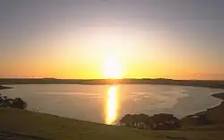Camperdown lies within the 'Lakes and Craters' region, sitting at the foot of Mount Leura which together with nearby Mount Sugarloaf are part of a large extinct volcanic complex known as the "Leura Maar".[12] To the immediate west are the deep volcanic crater lakes Bullen-Merri and Gnotuk while to the east is the crater lake Purrumbete popular for its Trout and Chinook Salmon fishing.