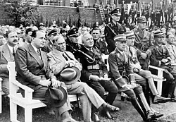 Mackenzie King was strongly moved by Hitler's letter and accepted the offer to have 12 Canadians visit Germany, which he somehow believed would lead to a peaceful resolution of the Danzig crisis.[17] Mackenzie King told the German ambassador in Ottawa that he regarded Hitler's letter "as an evidence of the confidence which I felt had been established between Hitler and myself at the time of our meeting, and the sincere desire mutually shared that every endeavor should be met towards mutual understanding".[18] Mackenzie King spent the rest of the summer of 1939 working on arranging for the visit, but the German invasion of Poland on 1 September 1939 put an end to the scheme.[19] The German-born American historian Abraham Ascher wrote that anyone reading of Mackenzie King's relationship with Hitler together with that of Lord Lothian (a prominent pro-appeasement Scottish aristocrat) "cannot avoid being taken aback by the superficiality and gullibility of these two authors" as both Lord Lothian and Mackenzie King convinced themselves that Hitler was an idealistic man of peace.[20] Under Mackenzie King's leadership, Canada had one of the most restrictive policies against accepting refugees from Germany. Between 1933 and 1939, Canada accepted only 2,000 refugees from Germany.[21]