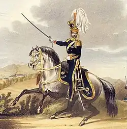 - ^ ROYAL CANADIAN HUSSARS - Historical Summary: "Queen's Light Dragoon - This light cavalry squadron was raised in Montreal by Captain Thomas Walter Jones in early December 1837. Forty-five volunteers from the unit were part of General Colborne's column at Saint-Eustache on 14 December 1837. Colborne kept the unit under arms throughout the remainder of the Rebellions, and they were presented with a guidon in April 1838. From 1839 until 1849, the Dragoons were stationed on the American frontier to intercept deserters. In 1849, when riots broke out in Montreal after the passage of the Rebellion Losses Bill, a detachment of the Queen’s Light Dragoons protected Governor General Lord Elgin from injury at the hands of stone-throwing rioters."