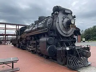 After the end of the 2009 operating season, it was used only sparingly as its flue-time was close to expiring. No. 2317 made its last run on September 5, 2010, during Steamtown's 2010 Lackawanna Railfest. After the event, the locomotive was placed into storage in the Steamtown Roundhouse where it is viewable to the public, it was previously waiting for Federal Railroad Administration (FRA) mandated 1,472-day inspection and repairs to operate again.[3] Steamtown originally planned to return No. 2317 to service again once the restoration of Boston and Maine 3713 was completed.[3] As of 2022, however, the locomotive still remains on static display, and Steamtown has stated that they have no plans on returning No. 2317 to service again anytime soon. The locomotive itself is in decent mechanical condition but would require an overhaul in order for it to run again. Boston and Maine 3713 will be replacing both No. 2317 and No. 3254 as Steamtown's main attraction for mainline excursion trains.[3][6]