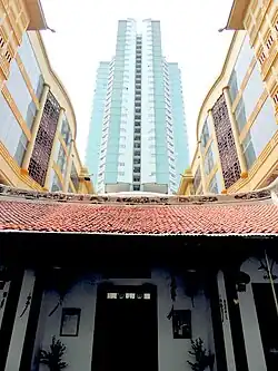 The ancillary buildings to the north and south were one-floored structures, and were used as service quarters and accommodation for children, concubines and servants. In 1995, the two-floored central buildings were demolished to make way for a superblock. Due to protests from heritage groups, demolition work was halted. As of now, the only original building is the one-floored reception hall. The other main buildings were temporarily dismantled to allow for construction of the superblock, then reassembled and restored. The rear building was never rebuilt.[7]