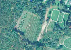 The Canisteo Living Sign is a historic civic project that was built by Ed Childs and Harry Smith, donated to the Canisteo School District, that also served as a navigational aid, located at Canisteo in Steuben County, New York. The sign consists of a set of 260 pine trees that spell out the name "Canisteo." They occupy a space approximately 90 feet (27 m) long and 300 feet (91 m) wide. The sign was originally laid out in 1933.[2] The sign was cleared in April 2016 and subsequently replanted beginning in May 2016 due to a number of dead and dying trees.[3]