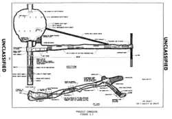 To perform the test, 400 tons of equipment was placed in a shaft 1,870 metres (6,150 ft) deep and 2.3 metres (90 in) wide. Test support equipment was designed to survive a ground upheaval of 4.6 metres (15 ft) at test time.[2]