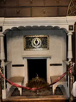 - Fireplaces made of Albești limestone, decorated with polychrome mosaic and gold leaf;