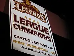 On Saturday, May 6, 2006, the Legends won 54–41 against the Huntington Heroes on the road, but not without controversy. The Legends were in violation for having an illegal roster, for they added some players to their rosters illegally. At first the AIFL awarded the win to Huntington; later Canton got the win, but had to pay an $800 fine for its actions.[1]