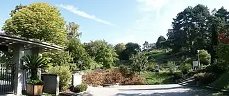 In 1946,[4] the garden was moved to its actual location, Avenue de Cour 14, on the south slope of Montriond-le-Crêt, a hill in the Parc de Milan, between the Lausanne train station and Lake Léman.