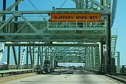 The Cape Fear Memorial Bridge is a steel vertical-lift bridge in North Carolina. It carries US 17/US 76/US 421 across the Cape Fear River between Brunswick County and New Hanover County. It also carried U.S. Route 74 until that designation was shifted to the Isabel Stellings Holmes Bridge. It has a lift span that can be raised 135 feet (41 m).[2] The lift span is 408 feet (124 m) long.[1]