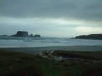 ![]() Looking west across Gibsons Beach to Cape Foulwind | |