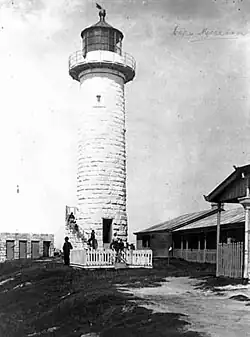 In 1859, control of the lightstation passed to the Government of Queensland, but it continued to be managed by the New South Wales Marine Board until the formation of the Queensland Department of Ports and Harbours in 1862.[3] In 1864 a telegraph office was opened at the Cape.[5] In 1873, the oil wick lamps were replaced with kerosene.[5] During the 1860s and 1870s some further structures were constructed in the station including a schoolhouse (opened in 1879), a stable, and other storage buildings.[5] A telegraph line was constructed during the 1890s, and a Morse lamp visible for 20 miles (32 km) was installed in the 1910s.[5] In 1913 the timber parts of the structures, which were damaged by ants, were replaced.[5] A 1911–1913 survey found the light in good shape, though the apparatus was found out of date and needing replacement. This replacement was to be delayed for a long time due to the transfer of all coastal lights to the Commonwealth, occurring officially October 1913, though practically in July 1915.[5] A post office was operated by the light keepers between 1915 and the early 1920s.[5]
