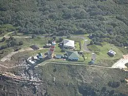 The structures of the station are built in three levels. On the highest level is the lighthouse, surrounded by the workshop, former powerhouse and fuel store, the head keeper cottage to the north and an office further north. On the second level is the first assistant keeper residence and two sheds, a garage and a powerhouse. On the bottom level is the second assistant keeper residence, some distance to the south, and a fuel store to the north.[5]