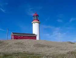 Cape Race Lighthouse is an active lighthouse located at Cape Race on the Avalon Peninsula, Newfoundland, Canada. The light's characteristic is a single white flash every 7.5 seconds; additionally, a foghorn may sound a signal of two blasts every 60 seconds. It is located on one of Canada's busiest shipping lanes.[2] The lighthouse is also a tourist attraction.[3]