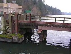 In 1915, the State Capitol Commission rejected a plan by former Olympia Mayor and state legislator Phillip H. Carlyon to replace Olympia's bridge to the westside with a dam and locks.[4] That plan would have created a lake very much like the present Capitol Lake. Because of opposition from upriver Tumwater businesses, such as the Olympia Brewing Company and the Olympia Power and Light Company, that plan was not approved.