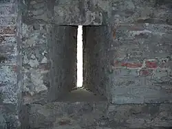 Originally the term referred to a covered passageway that traversed the ditch outside the curtain of a fortress. Fire from this point could cover the ditch beyond the curtain wall to deter any attempt to storm the wall.[3] Thus the passageway was equipped with musket ports and cannon ports that fired along the ditch.
