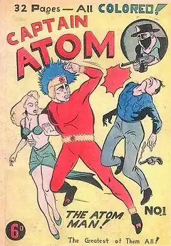 Captain Atom is an Australian comic book series created and written by Jack Bellew with illustrations by Arthur Mather.[1] It was published from 1948 to 1954, with 64 issues[2] and it also appeared as strips in a number of Australian newspapers. The protagonist, the first to use the name, has no relation to the later American superhero Captain Atom,[3] published by Charlton Comics in 1965[4] and subsequently by DC Comics in 1987.[5]