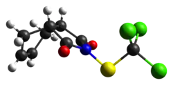 Captan is a general use pesticide (GUP) that belongs to the phthalimide class of fungicides. It is a white solid, although commercial samples appear yellow or brownish.[3]