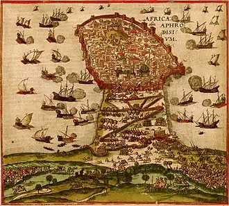 ![]() Mahdia in 1535. Engraving of 1575 by Braun and Hogenberg. | |||||||