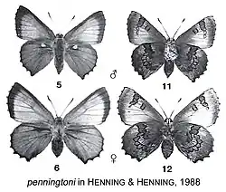 Capys penningtoni, the Pennington's protea, is a species of butterfly in the family Lycaenidae. It is endemic to South Africa, where it is restricted to the KwaZulu-Natal Drakensberg foothills.