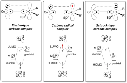 The chemical bond present in carbene radicals is surprising in that it possesses aspects of both Fischer and Schrock type carbenes.[1][9][10] As a result, the cobalt carbene radical complexes have discrete radical-character at their carbon atom, thus giving rise to interesting catalytic radical-type reaction pathways.