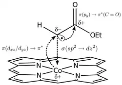 - ^ a b c Dzik, W.I.; Xu, X.; Zhang, X.P.; Reek, J.N.H.; de Bruin, B. (2010). "'Carbene Radicals' in CoII(por)-Catalyzed Olefin Cyclopropanation". Journal of the American Chemical Society. 132 (31): 10891–10902. doi:10.1021/ja103768r. PMID 20681723.