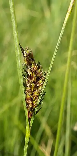 Carex lasiocarpa is a broadly distributed species of wetland sedge sometimes known as woollyfruit sedge or slender sedge.[2][3] It is considered a species of Least Concern by the IUCN Red List due to its extensive range (much of North America, Europe, and Asia) with many stable populations.[1]