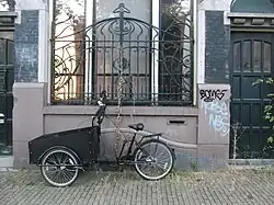 Cargo bikes in the tadpole configuration are considered the "traditional" type of cargo bike in the Netherlands and were common for commercial activities until the 1950s,[6][7] before becoming popular again in recent times with families with children as an alternative to cars in the late 1990s and the beginning of the 2000s.[8]