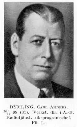 Dymling became a Candidate of Philosophy at the University of Gothenburg in 1921 and a Philosophy Licentiate in literary history in 1925. In 1931 he became head of Radioteatern in Stockholm. Between 1942 and his death in 1961, he was President of Svensk Filmindustri, heading the county's largest film company. He initiated a policy of making prestigious, artistic productions that was less than successful. Although he was resistant to the making of the melodrama Sunshine Follows Rain, based on Margit Söderholm's novel, the 1946 release turned out to be the company's most profitable film of the sound era.[3] [4]