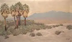 Carl Eytel (September 12, 1862 – September 17, 1925) was a German American artist who built his reputation for paintings and drawings of desert subjects in the American Southwest. Immigrating to the United States in 1885, he settled in Palm Springs, California in 1903. With an extensive knowledge of the Sonoran Desert, Eytel traveled with the author George Wharton James as he wrote the successful Wonders of the Colorado Desert, and contributed over 300 drawings to the 1908 work. While he enjoyed success as an artist, he lived as an ascetic and would die in poverty.[2] Eytel's most important work, Desert Near Palm Springs, hangs in the History Room of the California State Library.[3]