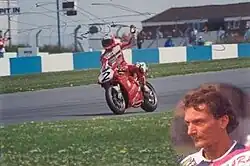 Carl George Fogarty MBE (born 1 July 1965), often known as Foggy, is an English former motorcycle racer and one of the most successful World Superbike racers of all time. He also holds the third highest number of race wins at 59 behind Jonathan Rea and Álvaro Bautista. He is the son of former motorcycle racer George Fogarty.[1] He retired in 2000. In 2011, Fogarty was named a FIM Legend for his motorcycling achievements.[2]