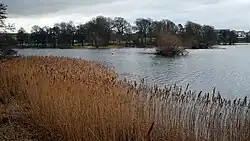 Carlingwark Loch is a small freshwater loch in the historical county of Kirkcudbrightshire, Dumfries and Galloway, Scotland lying just south of Castle Douglas and is roughly rectangular in shape, trending nearly north and south. The name of the loch comes from the Scots Gaelic word Caer meaning fort and wark the old Scots language word for work.[3] There are four artificial islets in the loch showing evidence of fortification and settlement, Ash Island is thought to be a crannog. Several archaeological finds have been retrieved from the loch including a bronze cauldron, sword and pan and two dugout canoes.[4]