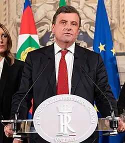 On May 10, 2016, just two months after being appointed Italy’s Permanent Representative to the EU, Calenda was recalled to Rome to assume the role of Minister of Economic Development.[16] He succeeded Matteo Renzi, who had temporarily taken over the position following the resignation of Federica Guidi due to the Tempa Rossa scandal.[17][18]