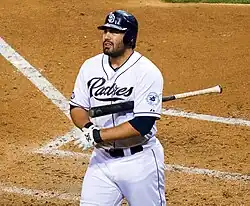 Quentin began the season on the disabled list as he recovered from knee surgery from the previous season, and was activated on May 13.[46] Upon return, Quentin struggled mightily offensively, hitting just .177 through 50 games. He was placed on the disabled list on July 26 due to a sore knee.[47] The injury ended his season and his three-year tenure with the Padres.