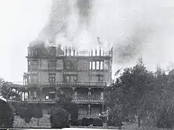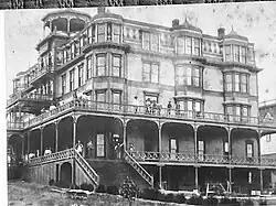 The original property on the mineral springs site was an eighty-five room, four-story hotel and spa called simply the Carlsbad Hotel. Described as “elegant and commodious," this was Carlsbad's first hotel, opening in late 1887. The hotel drew thousands from across the country, including tourists and “health seekers,” attracted by the fine beaches, easy railroad transportation, and the mineral water. In 1896, the hotel burned to the ground. Some suspected arson, but no charges were ever filed.[5]