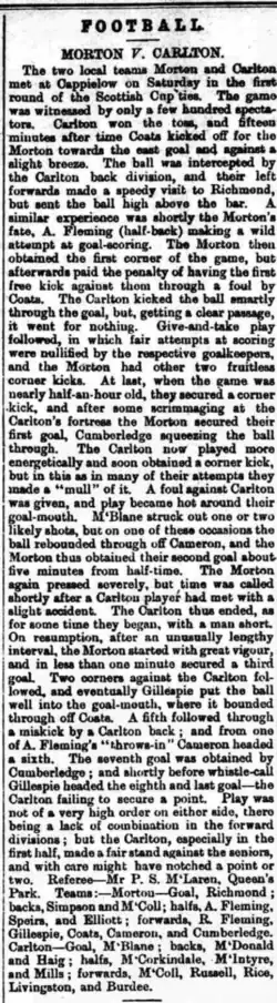 - ^ "Morton v Carlton". Greenock Telegraph: 4. 9 September 1889.