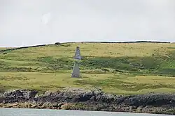 Off-shore from the head lie the islands of the Skerries and to the east of the Skerries three further islands, West Mouse, Middle Mouse and East Mouse. On West Mouse is a large white-painted column which is matched on Carmel Head by two further columns, known locally as the "Three White Ladies". They were constructed in the 1860s as navigation aids: lining up the three columns marks the position of a shallow reef offshore that was a grave danger to shipping.[5]