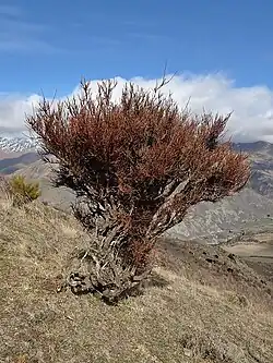 Carmichaelia petriei is endemic to New Zealand[6] and can be found in the South Island, as far north as the upper part of the Waitaki River Valley in Canterbury, as well as in the MacKenzie Basin, Otago and Southland including Stewart Island.[7]