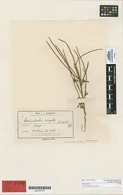 Carmichaelia petriei was first described by Thomas Kirk in his book The students' flora of New Zealand and the outlying islands published in 1899. He named the plant in honour of Donald Petrie, the discoverer of the species.[4] The isolectotype specimen of C. petriei can be found at the Auckland War Memorial Museum.[5]