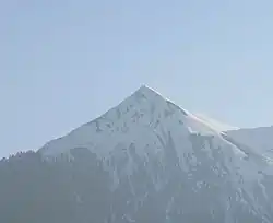 ![]() Hohe Warte/ Monte Coglians, the highest summit of the range, on the right, and Kellerspitzen on the left, viewed from the northwest. | |